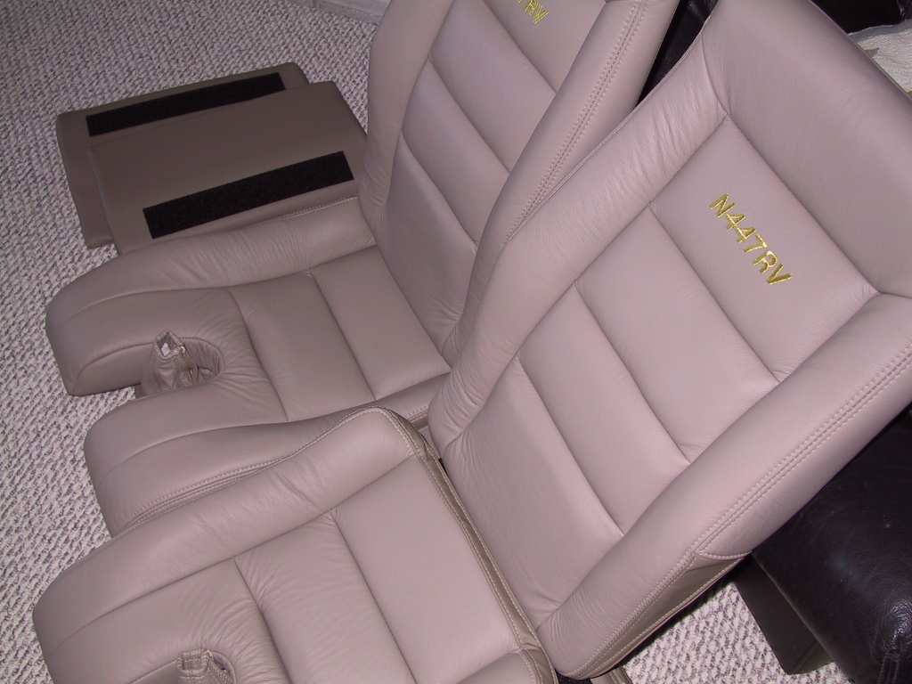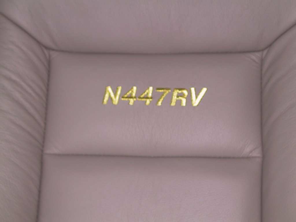Mine are Medium Neutral Leather with a gold metallic embroidery of N447RV
