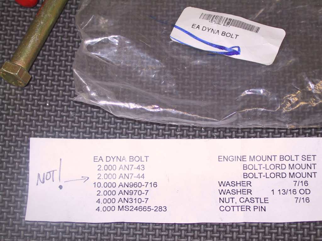 Vans Firewall Forward kit includes the mounts, nuts, washers and bolts to