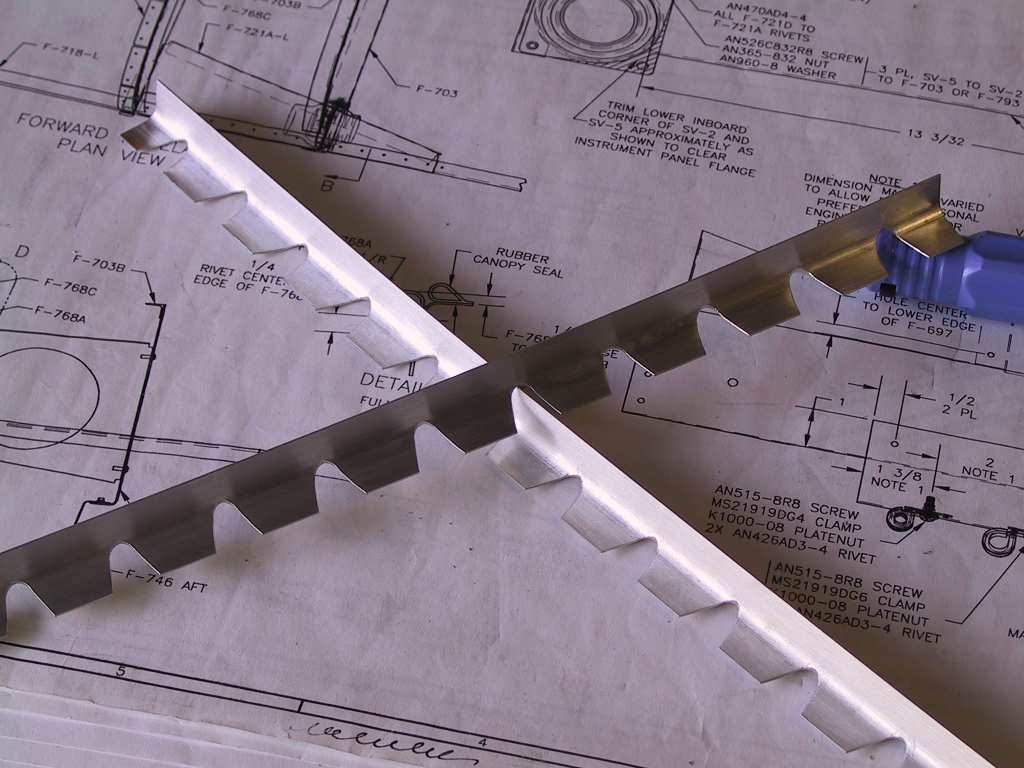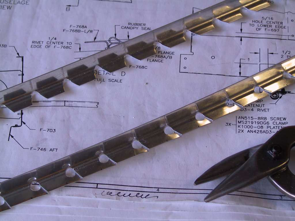 to the fuselage skins. I placed a strip on each of the angles and cut
