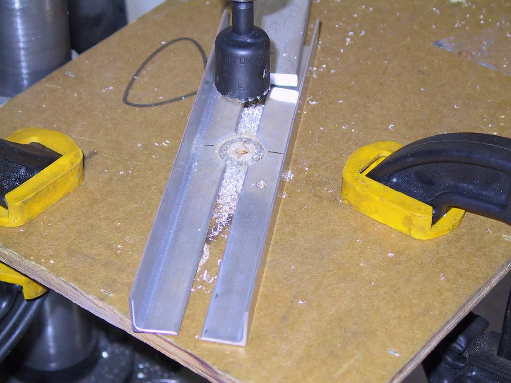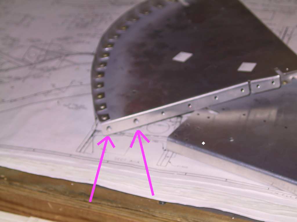 existing holes in the skins, countersunk the angles and dimpled the skin