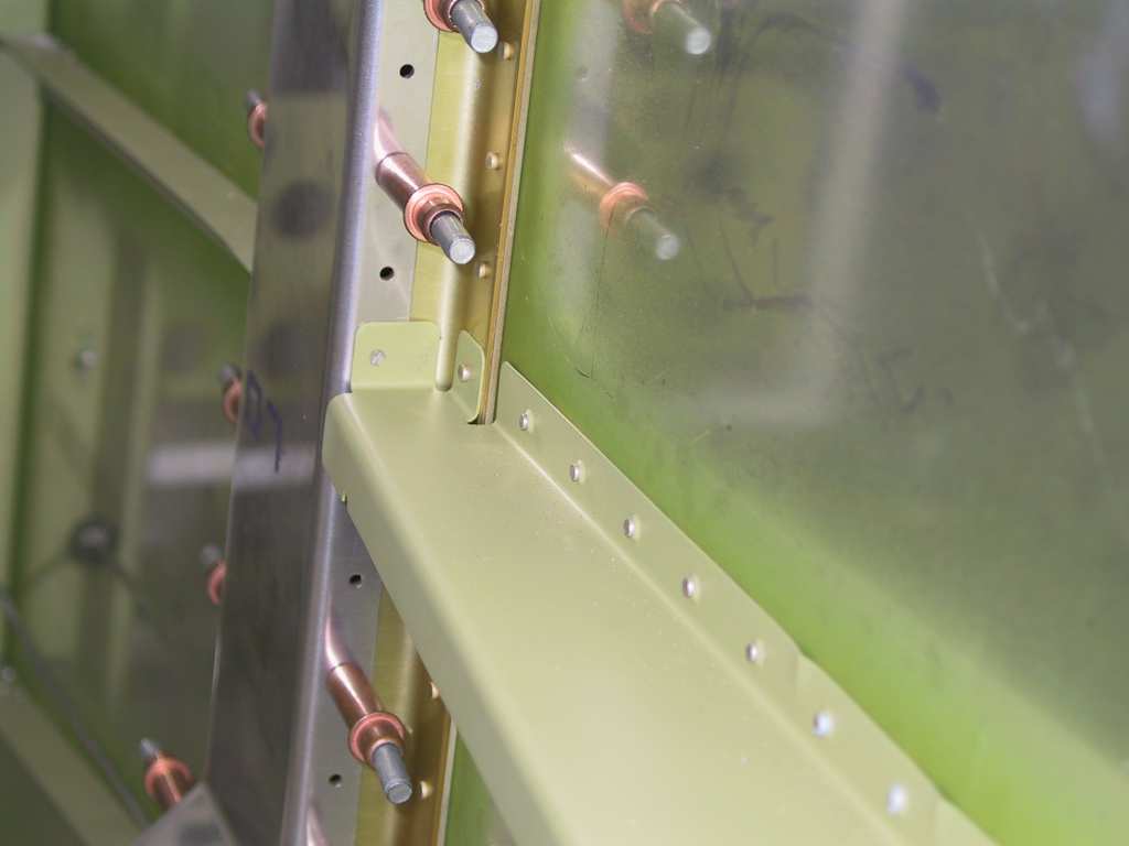 rivets to attach the brace and the tab which connects to the bulkhead.