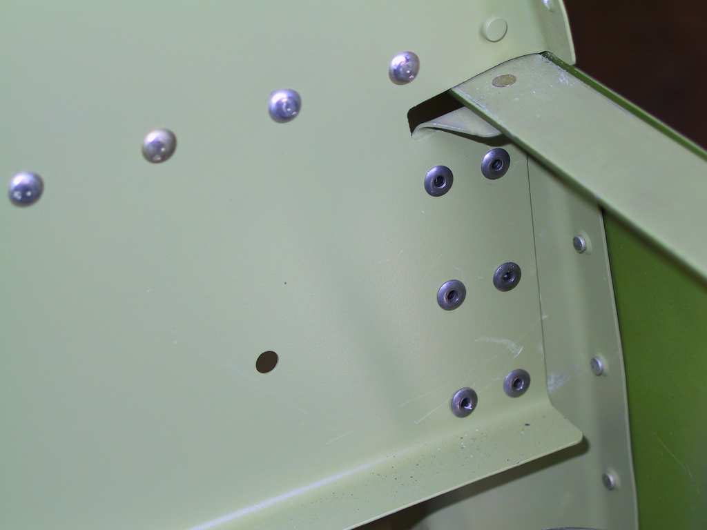 Along the front I used 3" spacing to avoid the existing pop rivets.